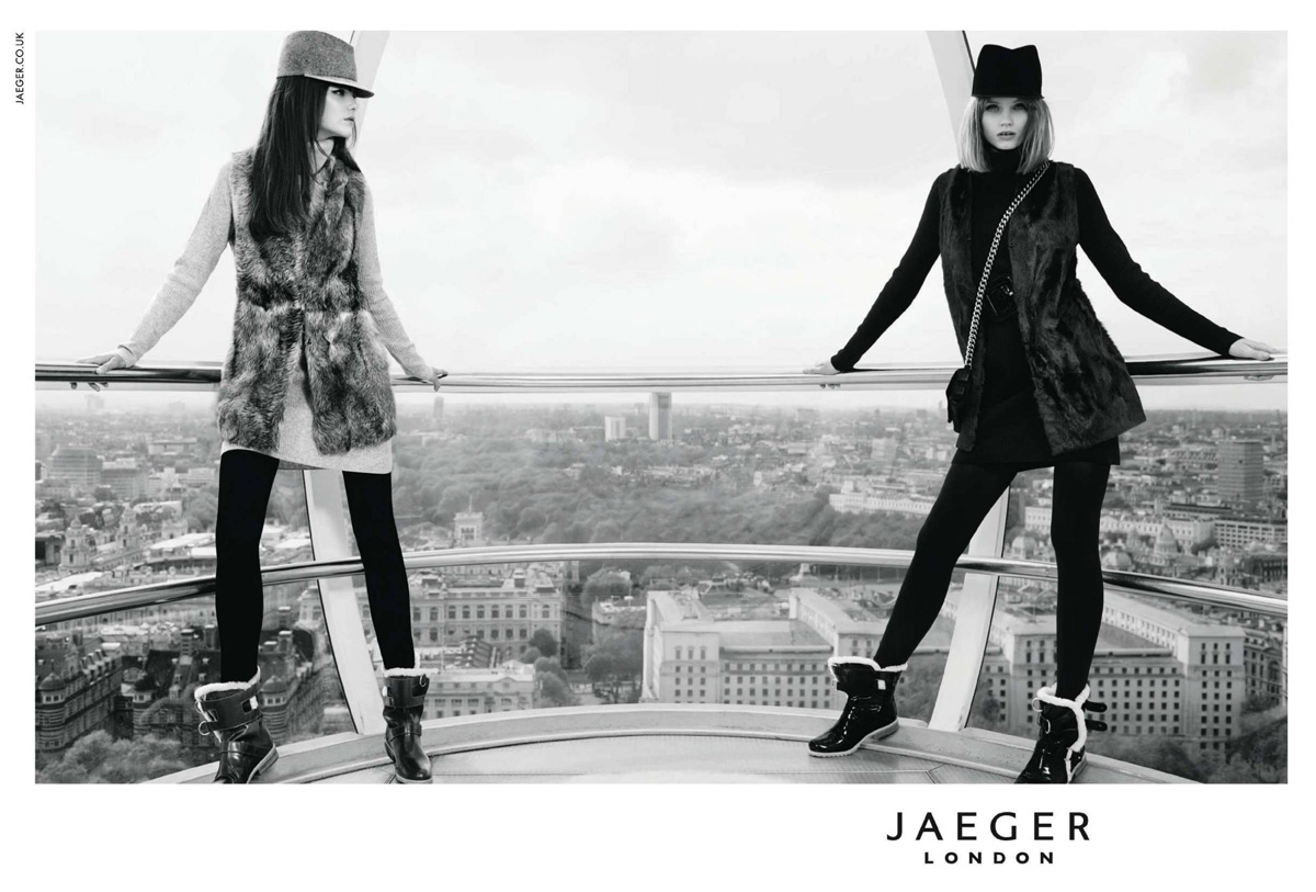 British brand Jaeger takes Abbey Lee Kershaw and Imogen Morris-Clarke to shoot the fall winter advertisement with top fashion photographer Emma Summerton for a shoot in the iconic London landmark The London Eye.