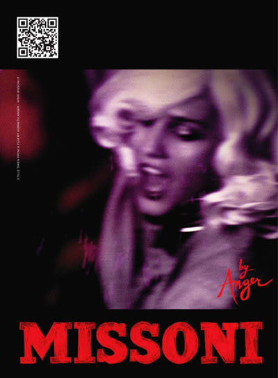 The very much proud of their family Heritage Missoni's once again take a part in their advertisement this time headlined by Margherita Missoni, they appear in a short film by the renowned Kenneth Anger. Screen caps from the short are morphed into a print campaign and you can view more of those and the video itself after the jump: