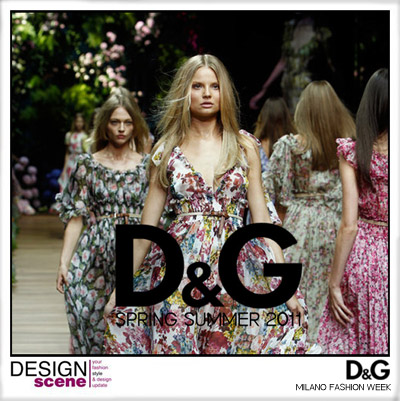 Models at D&G's latest womenswear show walking to the beat of Hurts Wonderful Life entered the most fashionable Garden Party of the season, Domenico and Stefano picked out some of the most original floral patterns to date and even their Disney friends joined in. Their signature finale brought out a slew of models clad in long floral chiffon gowns, definitive must-haves of Spring Summer 2011.