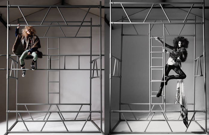 Fashion photographer Takay delives a dynamic new fashion story for the latest issue of Italian Fashion magazine Velvet with models Georgina Stojiljkovic and Michaela Kocianova.
