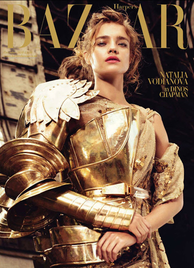Supermodel Natalia Vodianova is British Bazaar's both woman and inspiration of the year fronting their cover with a powerful image of her in an armor by artist Dinos Chapman photographed for the mag by Michelangelo Di Battista