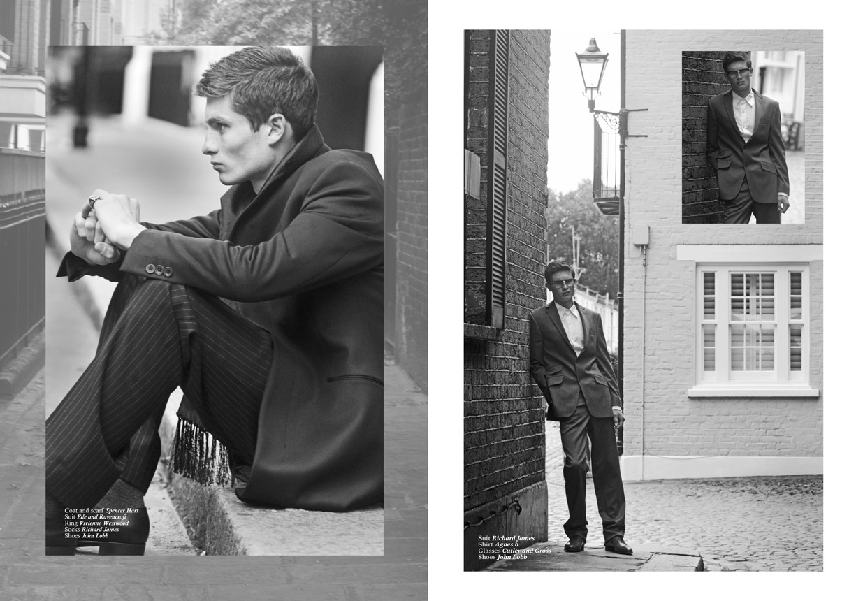 Client magazine's West End Boys story by fashion photographer Ian Cole featuring Select London's model Matt Spice. West End Boys is a tribute to London's prestigious Savile Row Master Tailors – featuring British heritage brands like Ede & Ravenscroft, Dr Martens, Richard James, Mark Powell and collection pieces from Spencer Hart, Aquascutum, Vivienne Westwood and Tim Soar to name a few.