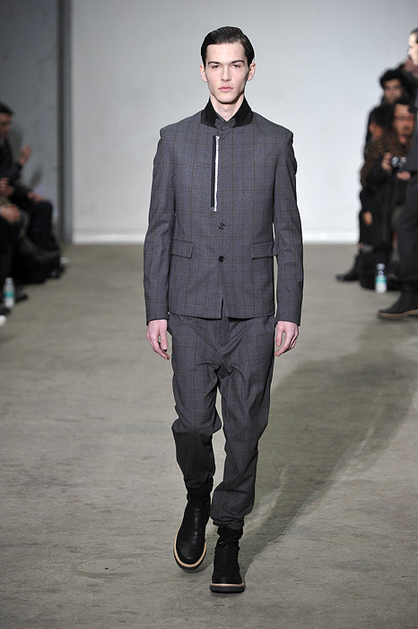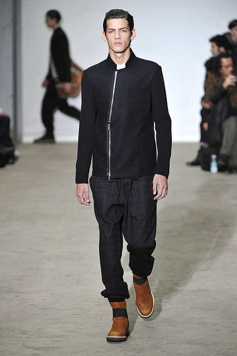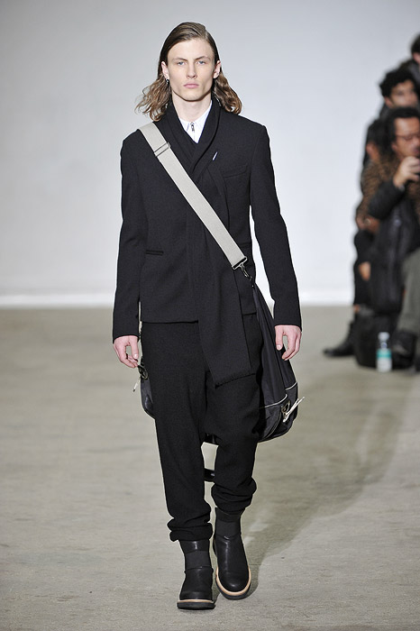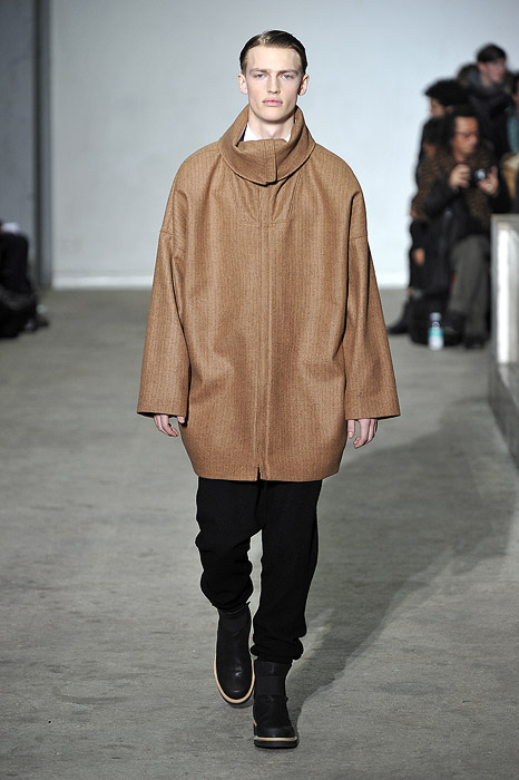 For his eponymous men's Autumn Winter 2011.12 collection just presented in Paris, designer Kris Van Assche stays true to his very own aesthetic, the cut seems even wider but still the avant-garde touch is widely available. Pieces sport the designers signature colours, while the accessories are predominantly camel, this new tone in the palette also takes over some of the outerwear pieces. Nevertheless the fine workmanship is once again part of the accessory line, view more than thirty new Kris Van Assche fall winter looks after the jump: