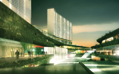 Massive Oppenheim designed project is set to rise in Sao Paulo by 2012 combining residential and retail space, designers have created a unique environment, flooding the ground levels with a major water feature.