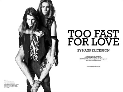 Fashion photographer Hans Ericksson goes to black and white for Too Fast For Love, an exquisite story featuring a unique model cast photographed for the latest issue of Faint magazine.