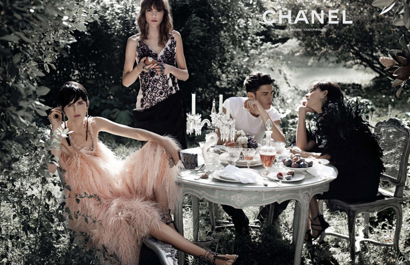 Under impression of Chanel's Fall Winter show presented today, here is the extended look of the outstanding Spring Summer 2011 campaign photographed of course by Karl Lagerfeld. Baptiste and Freja are joined by two legendary supermodels Stella Tennant and Ines de la Fressange.