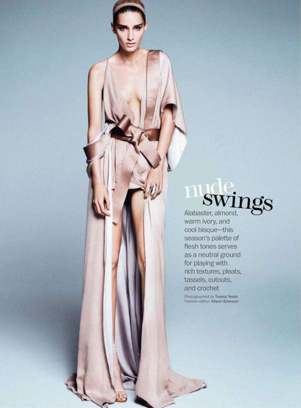 Elite model Linda Vojtova in a flawless fashion editorial coming from the pages of this month's Marie Claire magazine, Linda was photographed by fashion photographer Txema Yeste. For Nude Swings linda is wearing skin toned pieces selected by Alison Edmond from the collections by Haider Ackermann, Celine, Donna Karan, Roberto Cavalli, Gucci, Versace, Lanvin and Burberry Prorsum among other.