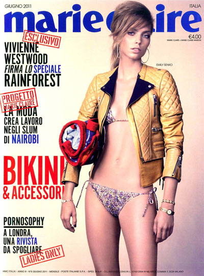 Italian Marie Claire fronts an interesting bikini combination for their June 2011 issue covered by Elite model Emily Senko photographed by David Slijper.