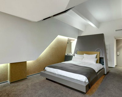 The noted practice Nau Architects was commissioned to create a contemporary hotel room space for the design of Aspria Hotel in Berlin, the hotel is housed in a former industrial building.
