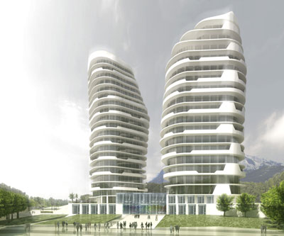 British practice McAdam Architects is shortlisted for the design of Sputnik Towers in Sochi, a resort city at the Black sea, in collaboration with Ginzburg Architects they will develop two 19 storey towers, retail and entertainment area and more than 200 apartments.
