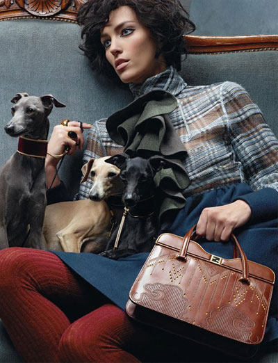 Its a family portrait time with Anja Rubik and Baptiste Giabiconi pictured by Brad Kroenig for a shoot of Fendi's Fall winter advertisement, behind the lens is Karl Lagerfeld.