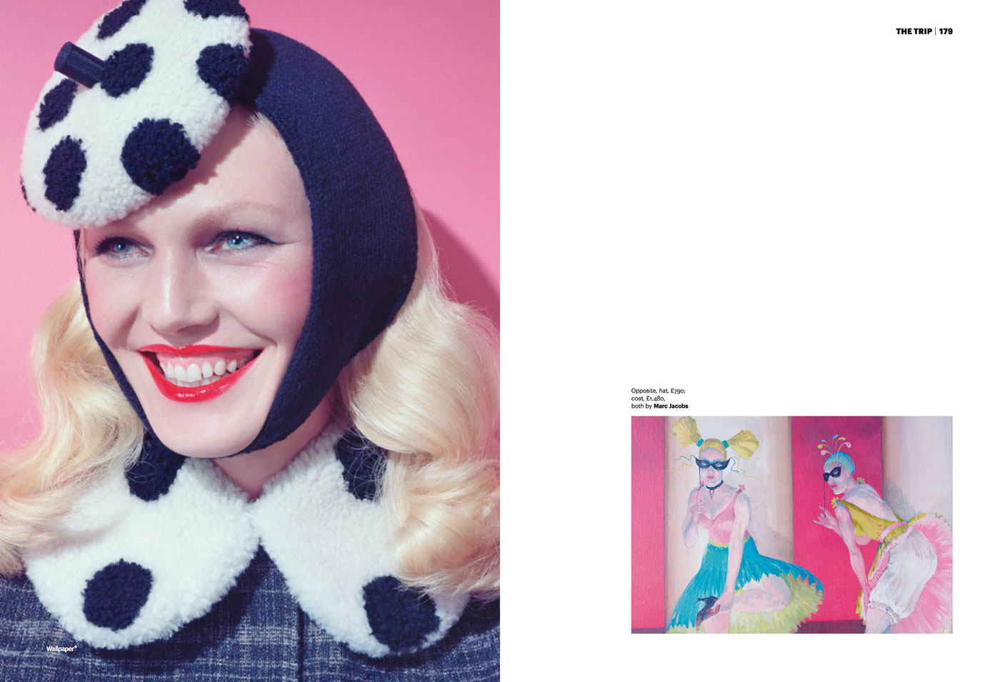 Lost Weekend fashion story lensed for the pages of Wallpaper* magazine's September issue by Miles Aldridge features a cameo of the photographer himself and in the leading role IMG model Shirley Mallmann. Outfitted by Beth Fenton Shirley is wearing pieces from the likes of Marc Jacobs, Bottega Veneta and Hermes among other, while Miles' clad in a suit by Tom Ford.