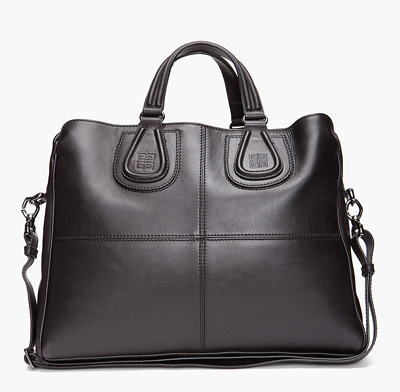 We find on Ssense this classic take on the Nightingale Briefcase by the house of Givenchy, this all black leather design comes with magnetic pockets in front and back.