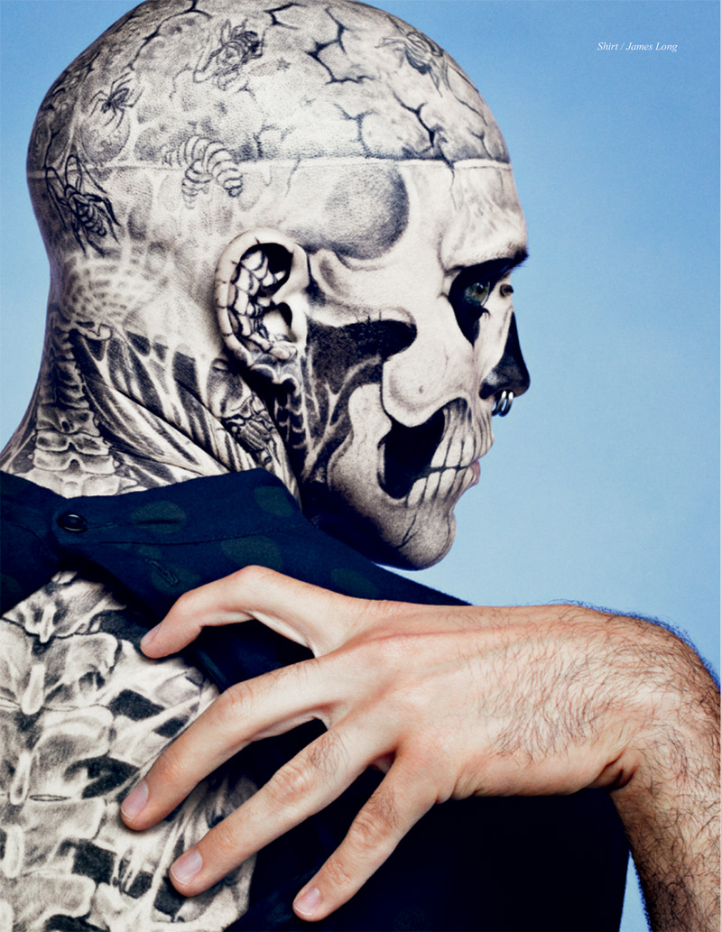 The outstanding cover story of Schön magazine's latest edition featuring the sensational Zombie Boy photographed by Matthew Lyn with styling by Kay Korsh. Makeup is courtesy of Dylan K Hanson. For more continue after the jump: