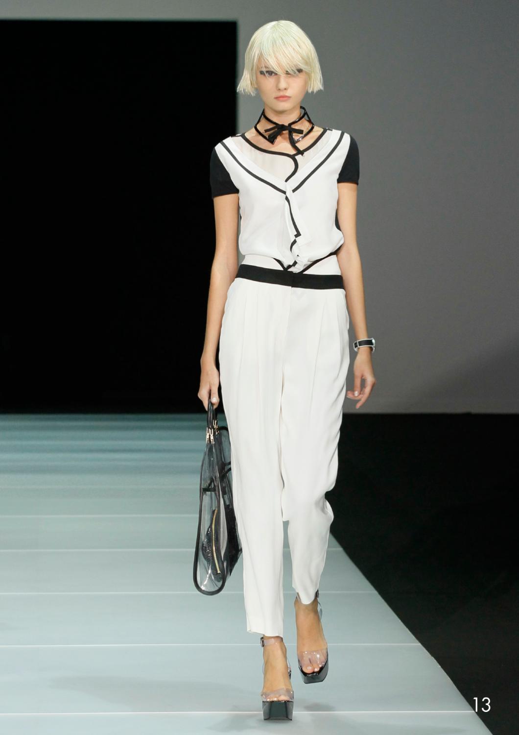 Shaped in Giorgio Armani's signature aesthetic the Spring Summer Emporio Armani collection presents a light but nevertheless elegant attire. For sixty looks and more details continue after the jump, our favorites are singled out: