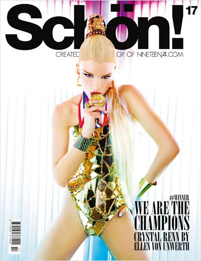 Top model Crystal Renn goes blond for the striking new cover of Schon! shot by legendary Ellen Von Unwerth with the striking styling by the talented Brett Bailey.