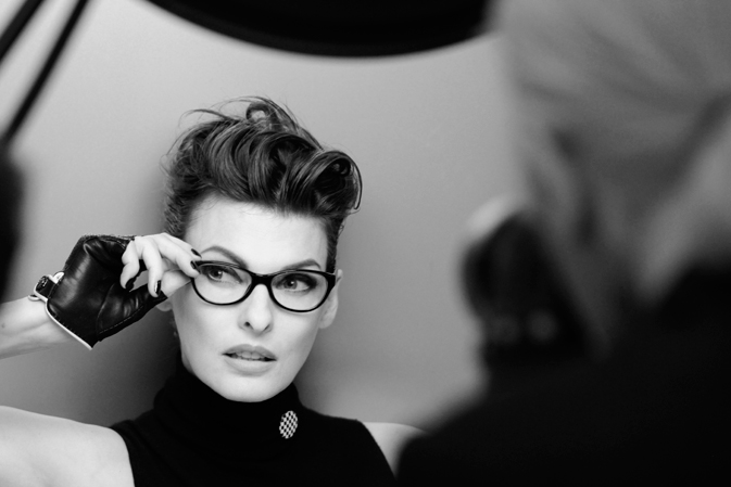 Stunning behind the scenes imagery from Chanel's eyewear campaign session starring supermodel Linda Evangelista for a shoot by Karl Lagerfeld.