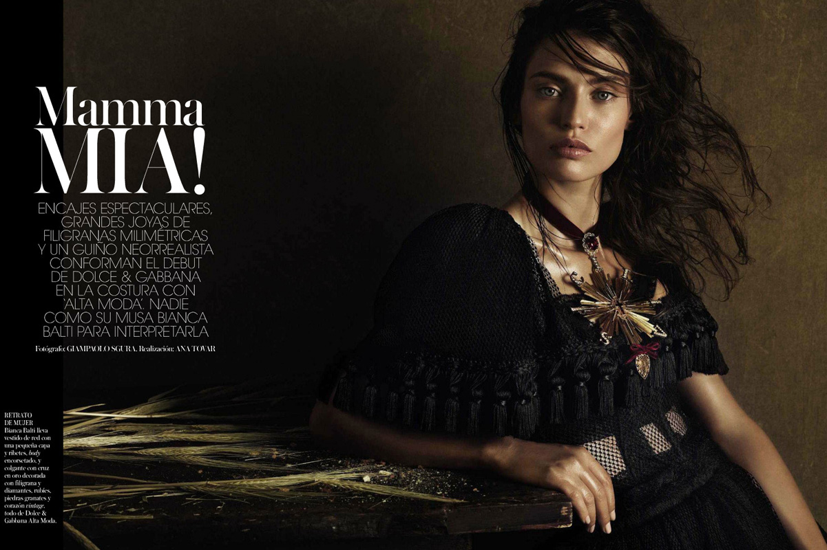 Italian top model Bianca Balti reunites with photographer Giampaolo Sgura this time to shoot cover story for the October 2012 issue of Vogue Spain.
