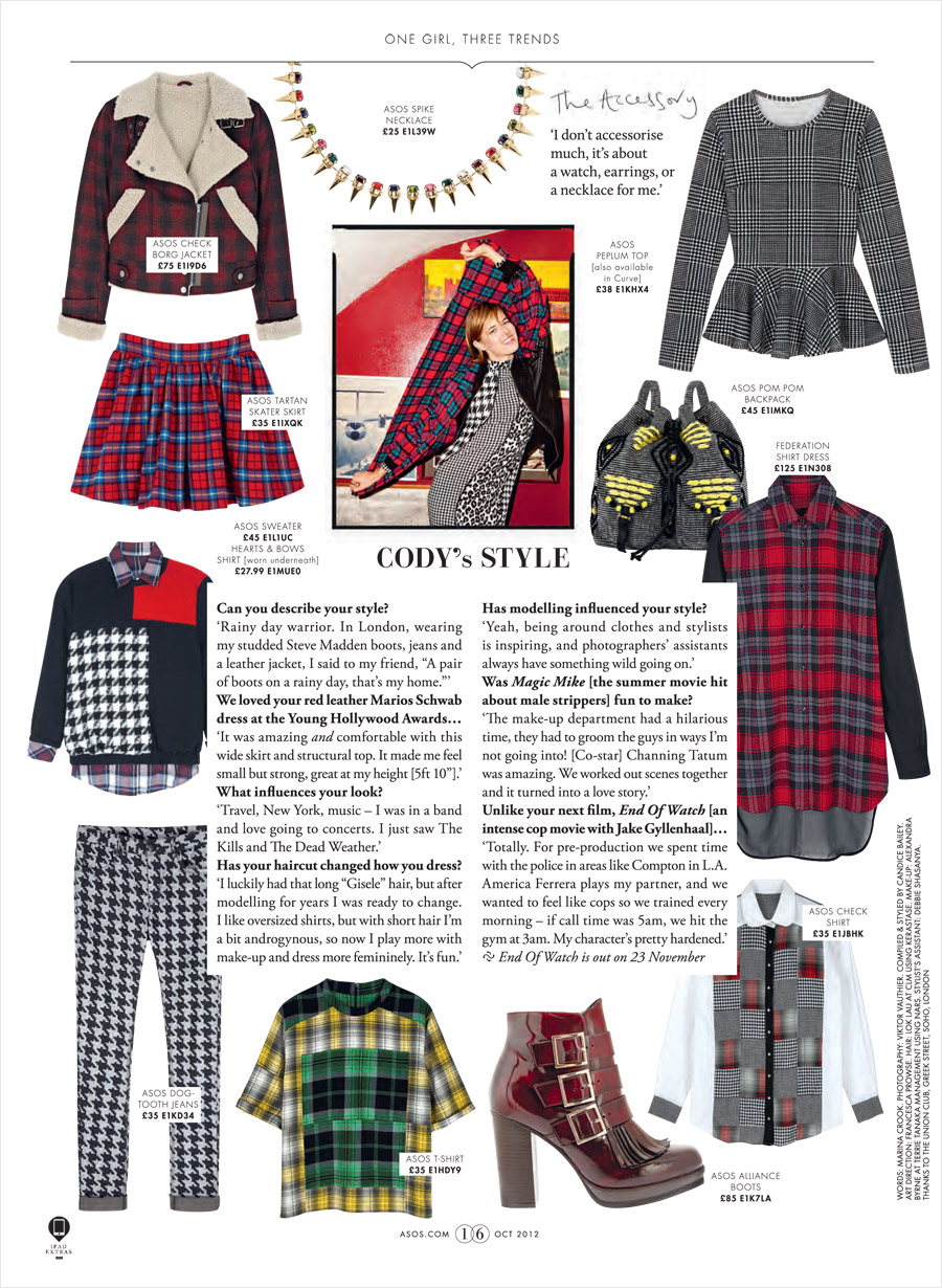 American actress Cody Horn connects with ASOS for a How I Wear story, she adds her LA meets New York style and a little red carpet know-how to autumn’s coveted trends. The 24-year-old promising star is best known for her recent role in Magic Mike. She'll next be on screen with Jake Gyllenhaal and Anna Kendrick in End of Watch which premiers on September 21st.