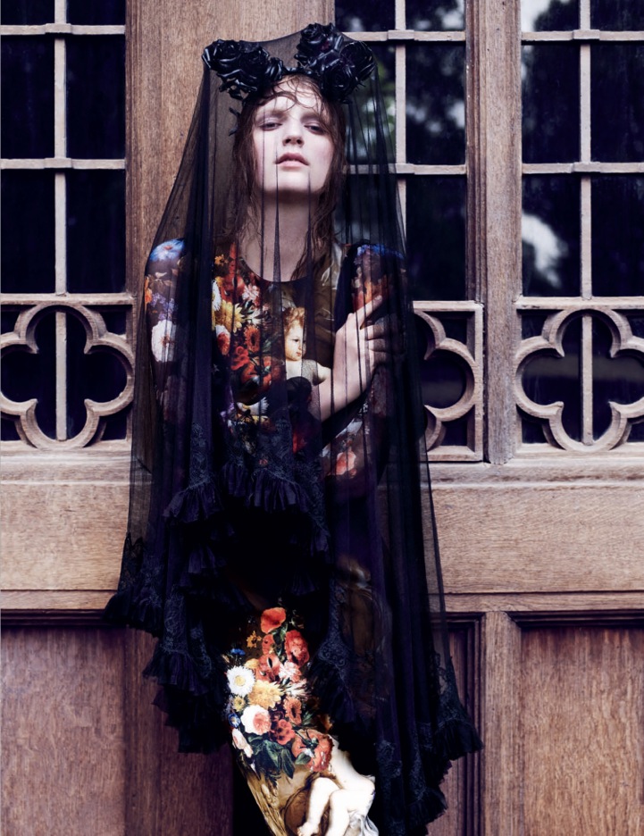 Breakthrough star of the modeling scene Laura Kampman teams up with Ben Toms for this showstopping Interview Russia autumn winter session. Laura is clad by Robbie Spencer in coveted garments from the likes of Alexander McQueen, Dolce & Gabbana, Jean Paul Gaultier, Balmain, Vivienne Westwood and Alberta Ferretti to name a few.