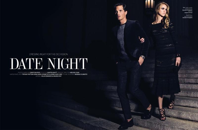 Top model Ollie Edwards joined by fellow VNY model Ingrid for an elegant August Man story captured by Christian Rios.