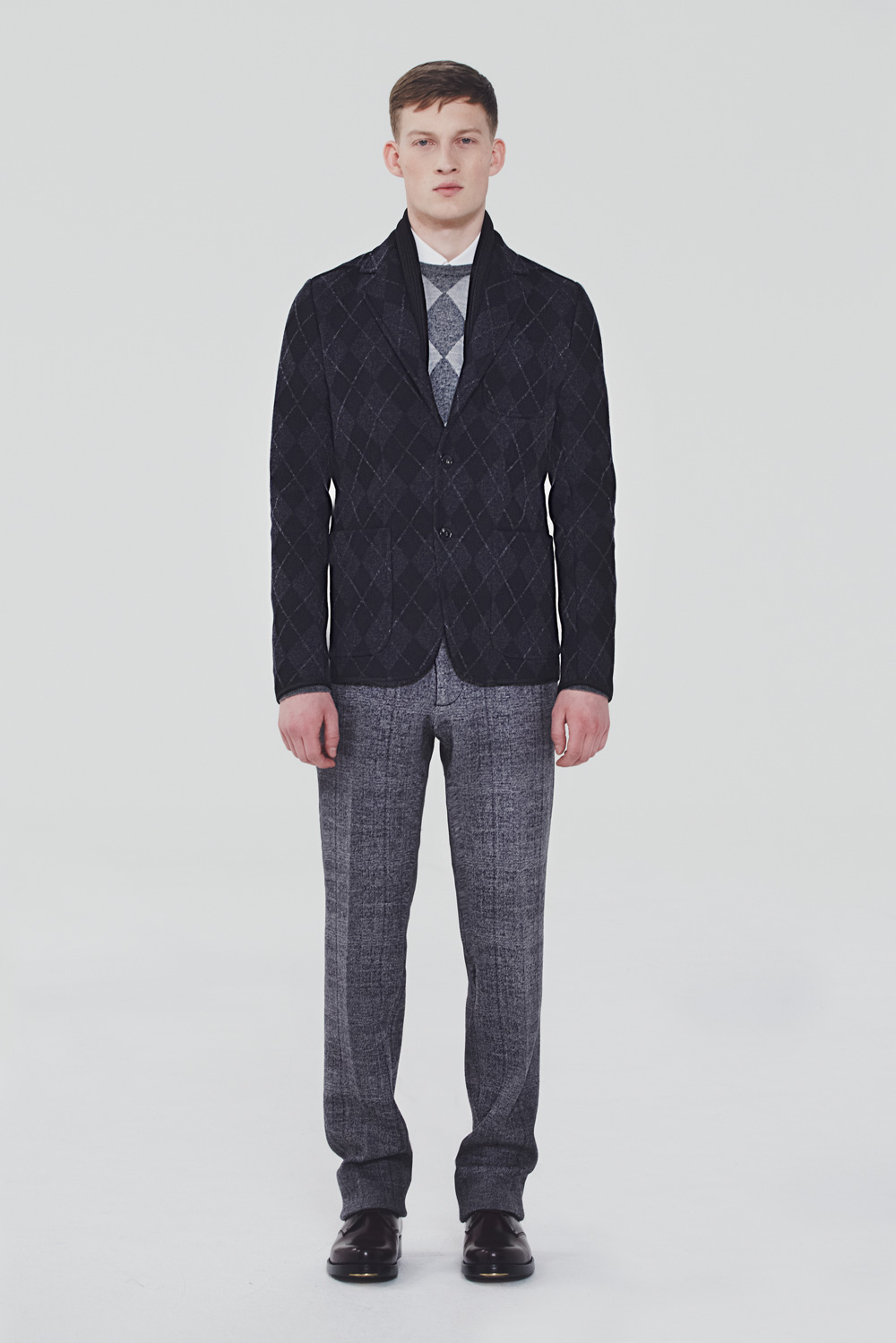 Pringle of Scotland known for it's always innovative knits prepares for the next year's season merging the definition of traditional outerwear and tailoring with label's signature knitwear. What shapes the collection is an ease shown in a combination of knit with woven materials and leather, at the same time the brand does not forget it's iconic argyle diamond.