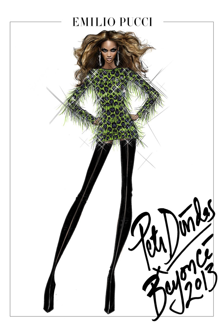 The prolific Peter Dundas ofEmilio Pucci stands behind the dazzling costume designs for Beyoncé's latest world tour which kicked off yesterday in Belgrade. Discover more of the design after the jump: