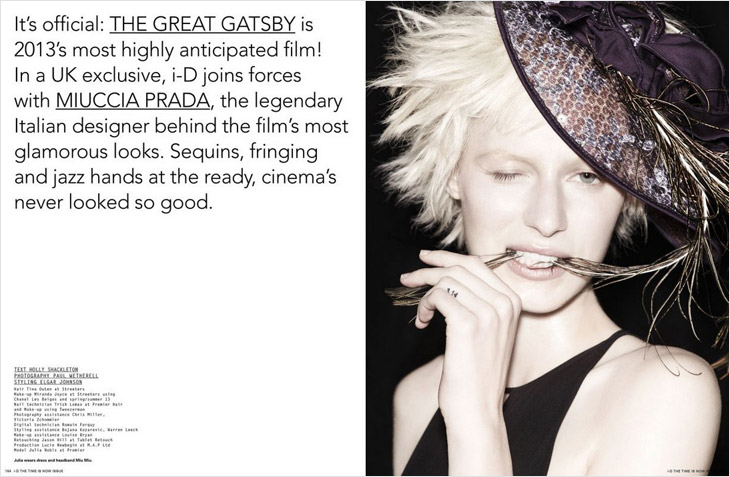 Breakthrough star of the modeling scene Julia Nobis takes one of i-D magazine summer 2013 covers with a shoot by the prolific Paul Wetherell.