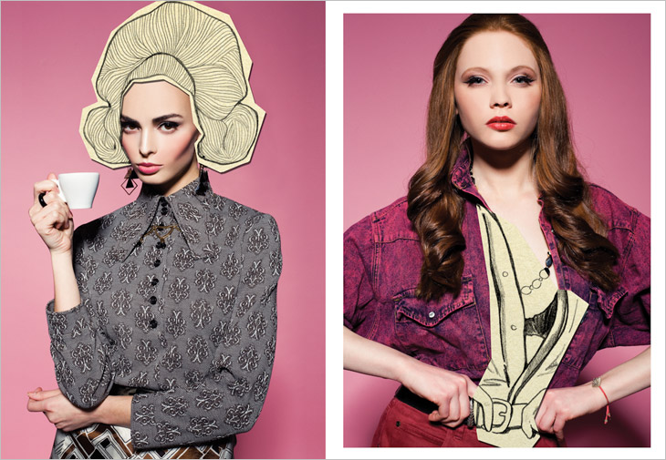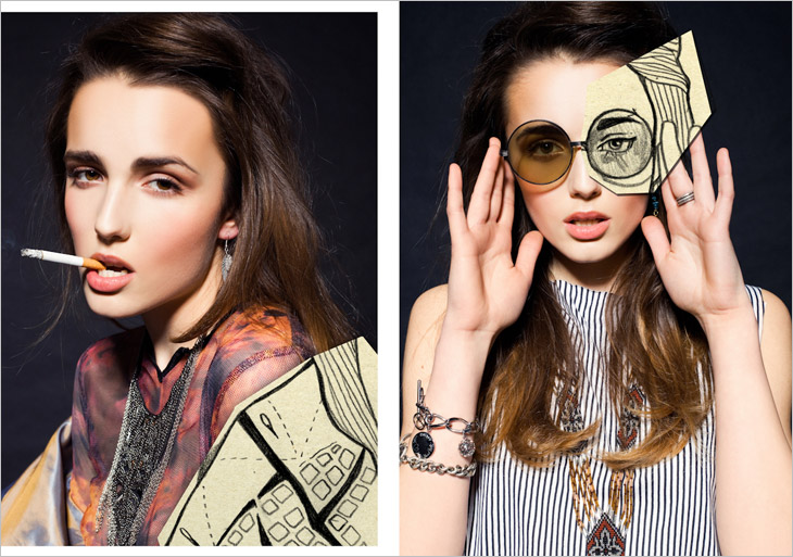 Fashion photographer Lukasz Dziewic teams up with illustrator Magdalena Pankiewicz for the Paper Part of Me story featuring models Karina, Ewa, Magda (Model Plus), Nadia, Irina (Rebel Models), Natalia (D'Vision), Nicole (Neva Models), and Sonia for the latest issue of Hunger TV. Styling is courtesy of Robert Kie?b.