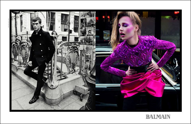 Balmain Fall Winter 2013 advertisement starring Cora Emmanuel, Manon Leloup, Elisabeth Erm, Khadija and Clement Chabernaud in a shoot by Inez & Vinoodh.