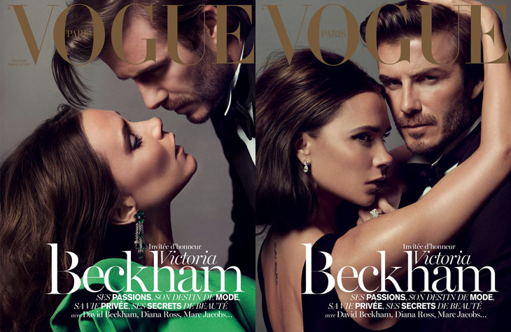 Spice Girl turned fashion designer Victoria Beckham joined by her husband David Beckham for the cover shoot of Vogue Paris December 2013/January 2014 issue. The couple is photographed by the famed fashion and celebrity photographers Inez and Vinoodh.