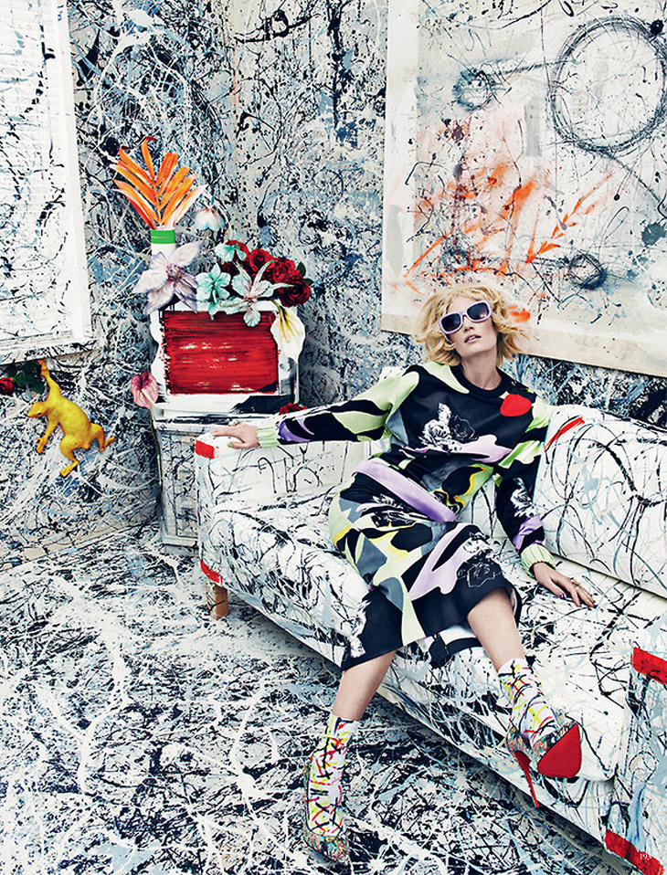 Up and comer Drake Burnette strikes a pose for the eye-catching Neo-Expressive story captured by fashion and celebrity portrait photographer Sebastian Kim for the January 2014 edition of German Vogue.