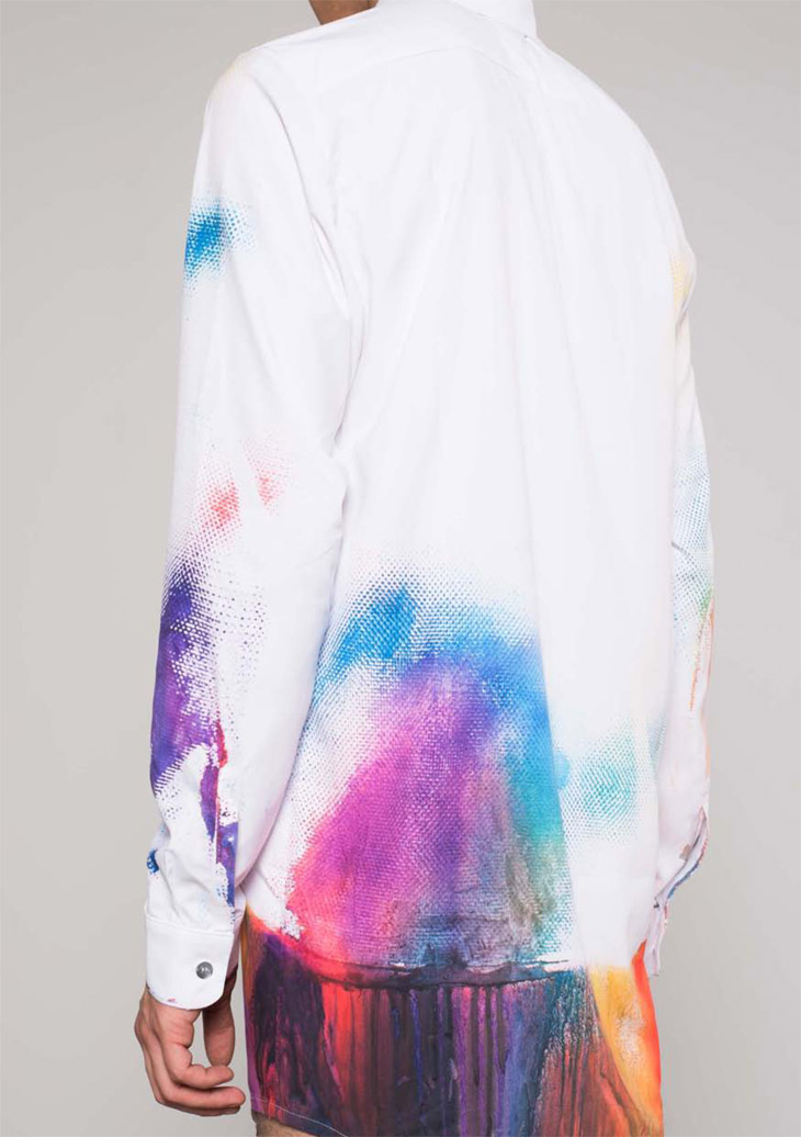 Julian Zigerli's SS14 Collection “At the End of the World to the Left” plays with mixed boundaries, layers that fow in and around each other and structures that evaporate. At the End of the World to the Left: Limbo. A collision of colours, emptiness and placid chaos. Through the print collaboration with the Berlin-based artist Katharina Grosse, Julian developed a collection of designs that embody this abstract space. This tight artistic alliance pushes not only the boundaries of the fabric, but also dissolves the wall that separates clothing, art and environment. A human canvas, which breaks away from its surroundings while on the road to nowhere.