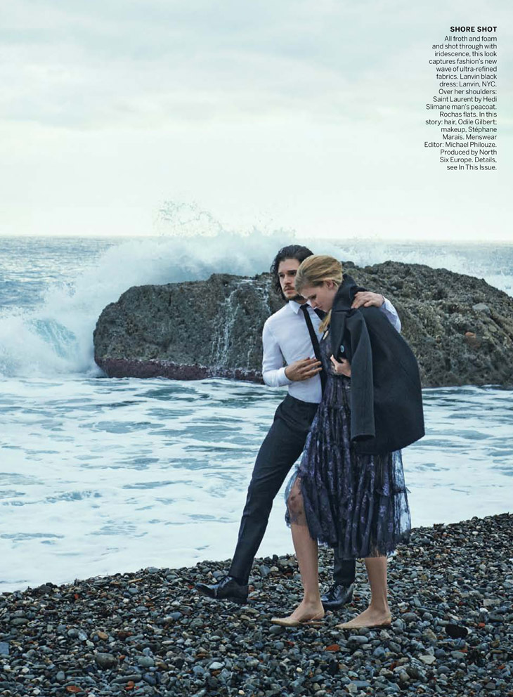 A Fine Romance story shot by legendary fashion photographer Peter Lindbergh (2b Management) for American Vogue star supermodel Lara Stone joined by Game of Thrones star Kit Harington. Styling for the dreamy session is courtesy of fashion editor Tabitha Simmons who handled Lara's outfits, while Kit was clad by menswear editor Michael Philouze.