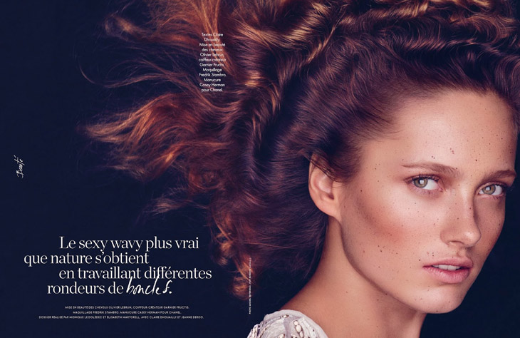 Supermodel Karmen Pedaru stars in Elle France's March 2014 cover story captured by fashion photographer Miguel Reveriego. Estonian stunner was styled for the Beaute story by Julie Chanud-Bombard. Hair styling is courtesy of Olivier Lebrun (See Management), with makeup by Fredrik Stambro and manicure by Casey Herman.