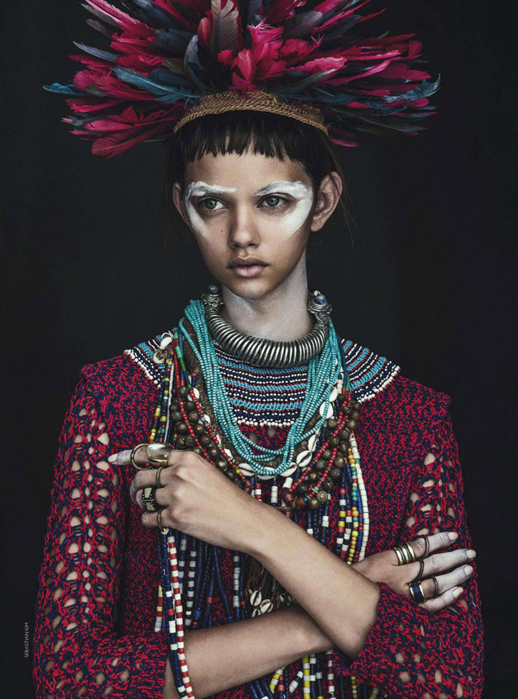 Vogue Australia enlists fashion photographer Sebastian Kim who contributed the showstopping Tomorrow's Tribe story starring up and comer Marina Nery styled for the session by Katie Mossman.