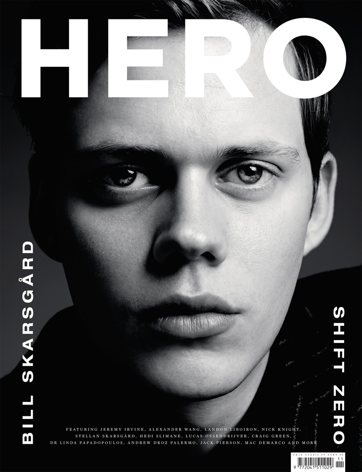 Up and coming Swedish actor Bill Skarsgård takes the cover of HERO Magazine photographed by designer / photographer Hedi Slimane.