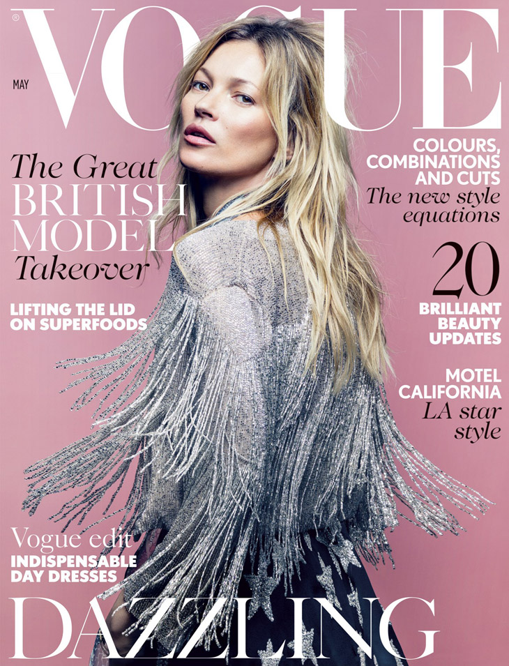 Supermodel Kate Moss covers British Vogue's May 2014 edition captured by fashion photographer Craig McDean. On the cover Kate is wearing pieces from her latest collection for Topshop. This is 35th time for the gorgeous Kate to cover British edition of Vogue.