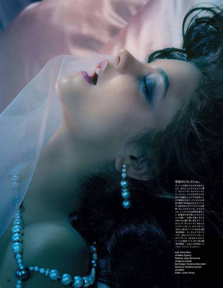 The gorgeous Barbara Palvin is A Dreaming Lady for the June 2014 edition of Vogue Japan photographed by Miles Aldridge. For the story Hungarian stunner was styled by Spela Lenarcic, with hair by Kerry Warn, and makeup by Lloyd Simmonds.