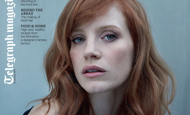 American actress Jessica Chastain takes the cover story of Telegraph Magazine‘s latest edition captured by photographer Lorenzo Agius at Atelier Management with styling from Daniela Agnelli. Hair styling by Renato Campora with makeup by Mary Greenwell.