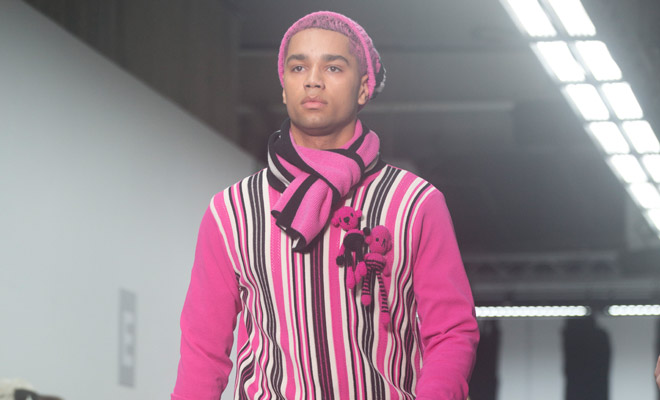 Sibling created pink punk looks with animal toys as part of their Fall Winter 2015.16 menswear collection presented at this year’s London Collections: Men.