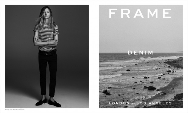 Frame Denim enlists supermodel Sasha Pivovarova to star in their Spring Summer 2015 advertising campaign lensed by fashion photographer Erik Torstensson with styling from George Cortina. Makeup is work of Jeanine Lobell with hair styling by Didier Malige and manicure by Elisa Ferri.