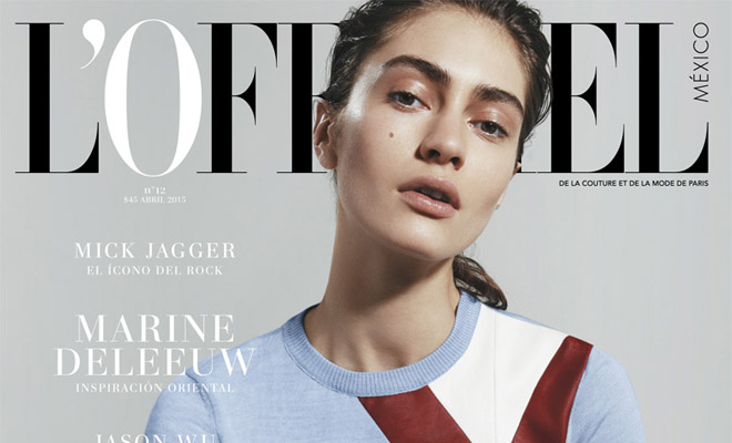 Top model Marine Deleeuw teams up with fashion photographer Christopher Ferguson at Atelier Management for the cover story of L’Officiel Mexico‘s latest edition. In charge of styling was Christopher Campbell at Atelier Management with makeup by Justine Purdue and hair styling by Thomas Dunkin.