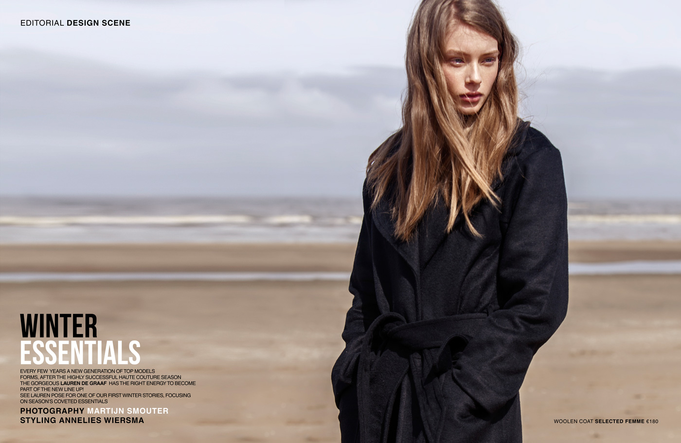 Up and comer Lauren de Graaf is gorgeous in Winter Essentials a new DESIGN SCENE exclusive story shot by the talented fashion photographer Martijn Smouter. In charge of the elegant styling was Annelies Wiersma. Makeup courtesy of makeup artist Amber Vellema.