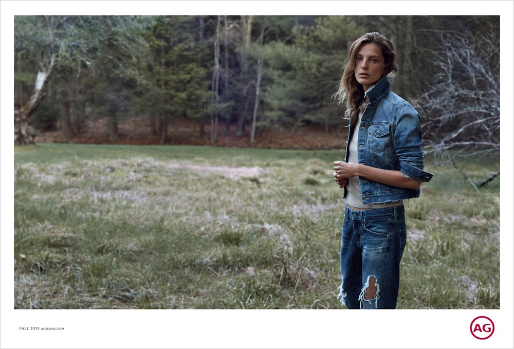 Supermodel Daria Werbowy stars in AG Jeans Fall Winter 2015.16 campaign captured by fashion photographer Cass Bird with styling from Alastair McKimm. Makeup is work of Frank B with hair styling by Bob Recine. Set design is courtesy of Peter Klein at Frankreps, production by Rockman Pro. Creative Direction by Berger & Wild, director of photography Jacques Naude.