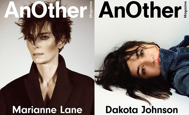 AnOther Magazine enlists Oscar-winning actress Tilda Swinton and Fifty Shades of Gray‘s star Dakota Johnson to cover their Fall Winter 2015 edition. Tilda Swinton (as Marianne Lane) posed for fashion photographer Glen Luchford, and Dakota Johnson was captured by Collier Schorr, styling for both covers is work of Katie Shillingford.