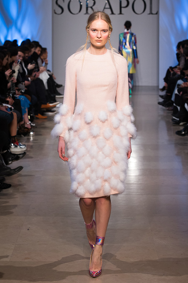 Sorapol presented Fall Winter 2016 womenswear collection during the recent Paris Fashion Week. The collection is inspired by colors of the Nortern Lights, featuring metalics and hologram color palette.