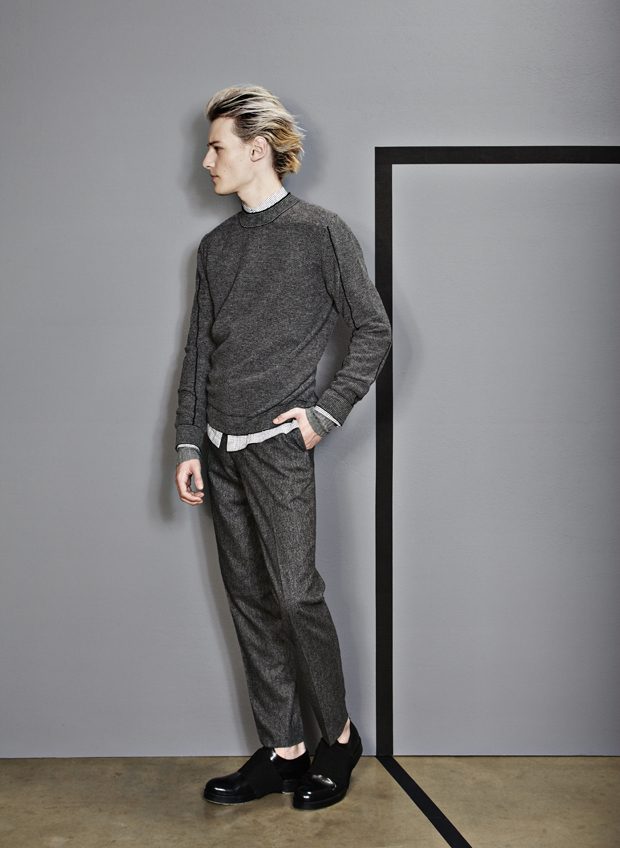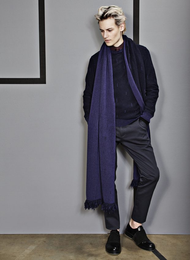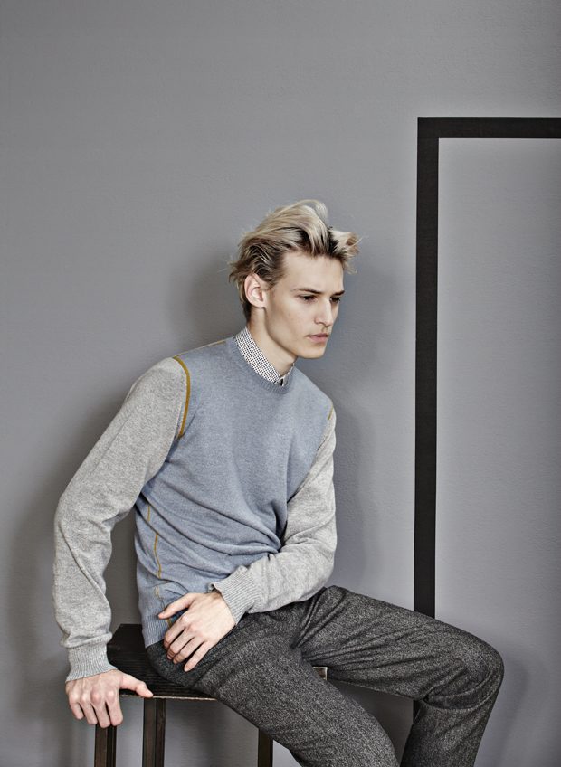 Cividini men’s collection for Fall Winter 2017 is built on a premise of having a second skin. It’s what you see outside that makes you want to discover what is hidden inside. This is achieved by combining different colors and materials – cashmere, wool silk, cotton crepe in earth tones, blue and grayscale.