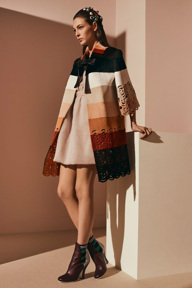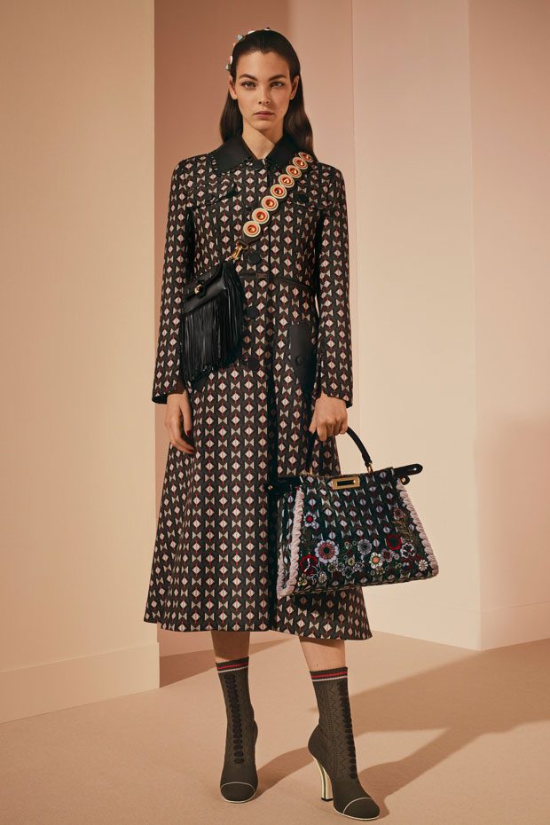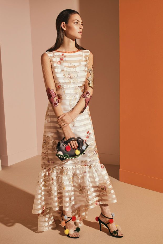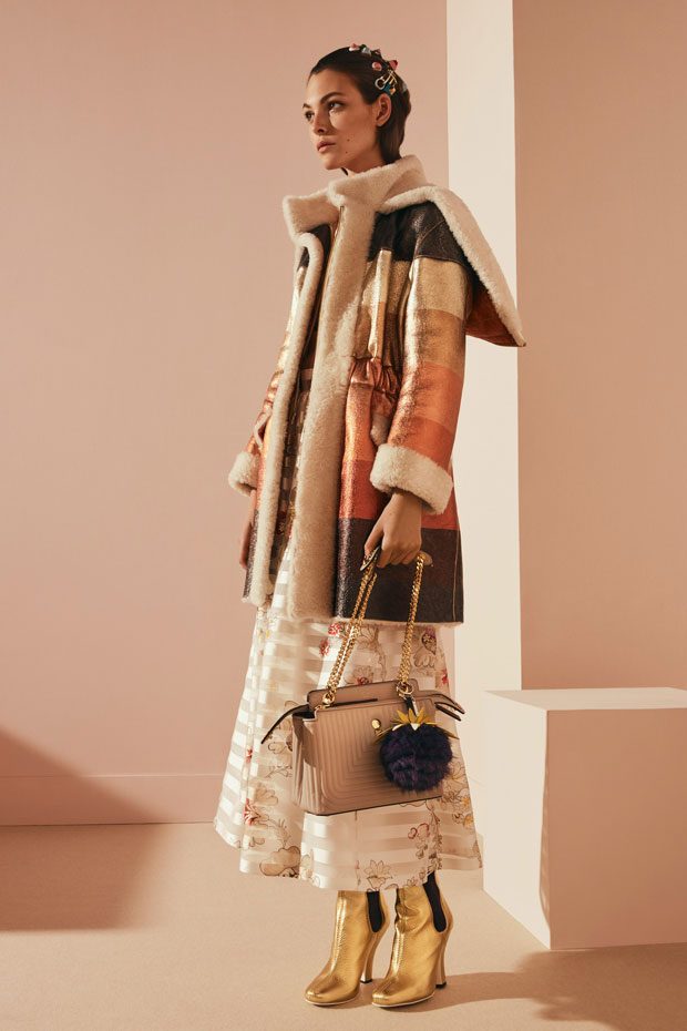 Discover airy volumes and dynamic silhouettes in FENDI‘s Pre Fall 2017 Collection. Both Silvia Venturini Fendi and Karl Lagerfeld presented hyper decorative pieces, fun and luxurious, that reflect label’s craftsmanship and innovation.
