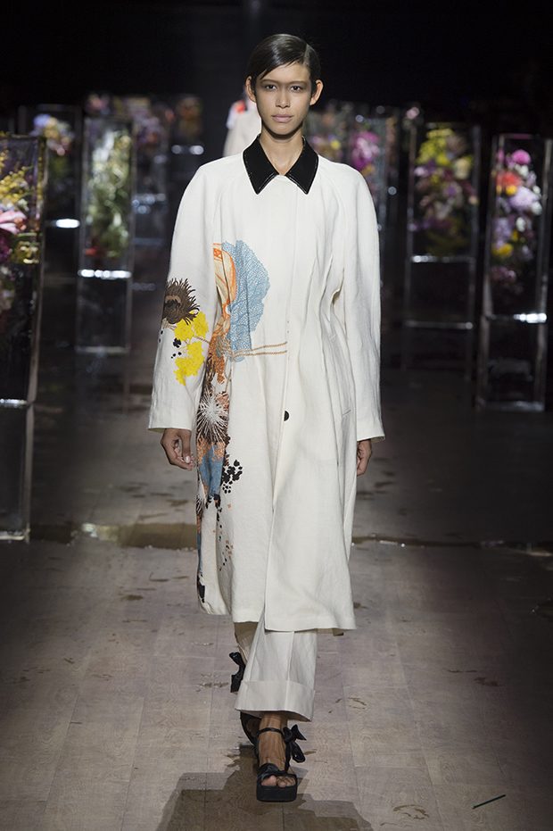 Discover Dries Van Noten‘s Spring Summer 2017 collection presented during the Paris Fashion Week, inspired by the art of Azuma Makoto.